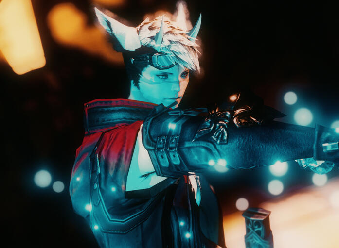 As a Miqo'te, Ezurah has highly developed senses, particularly when it comes to smell and sharpness of perception. These abilities were further enhanced when he met the residents of Mehwahhetsoan.He also has sharp white fangs, being a mix between the sun and the moon, which causes his vision to change in dark places or when night falls.